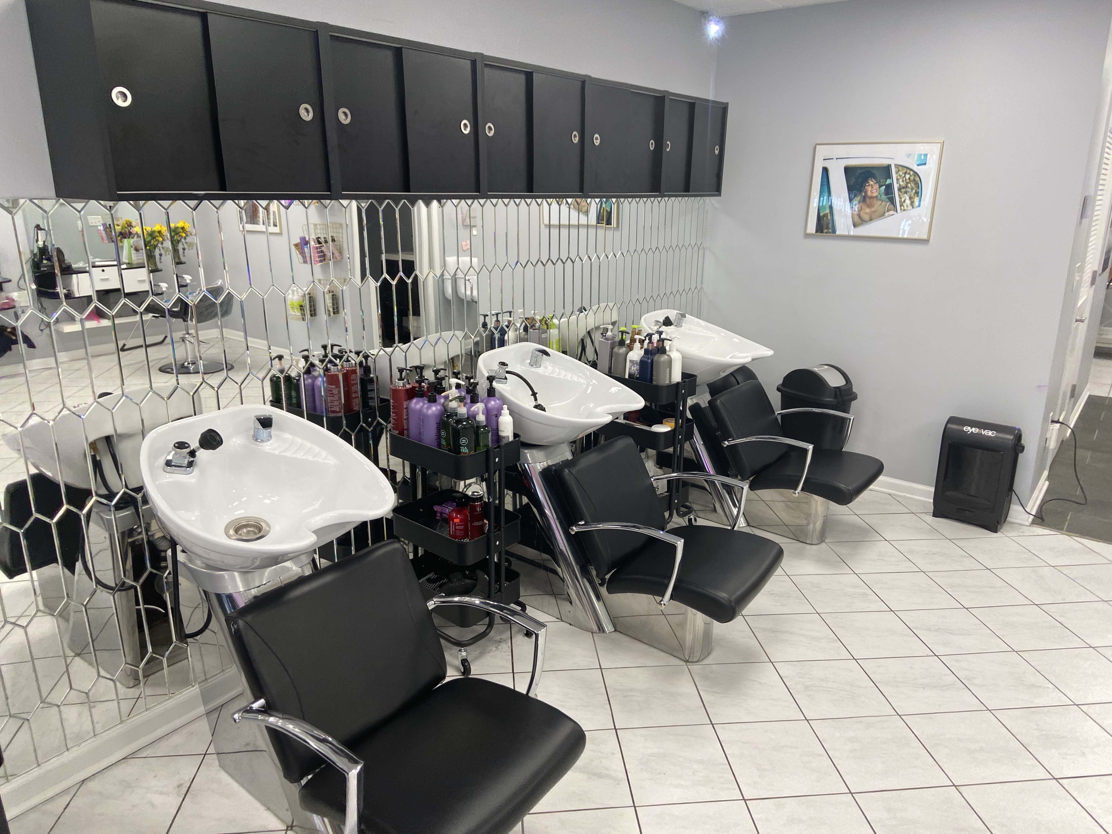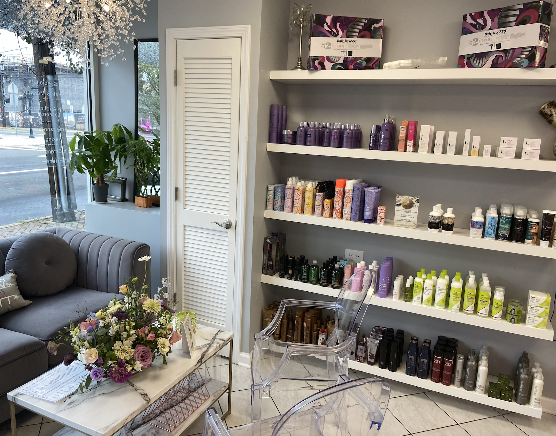 We proudly provide towels, drapes, retail for sale, station products, a full coffee bar, and a selection of shared clips, tint brushes, bowls, whisks, balayage tools, highlighting foil, saran wrap, swatches, and so much more for your use. We have beautiful lighting, backdrops, and large windows for the perfect social media posts.
