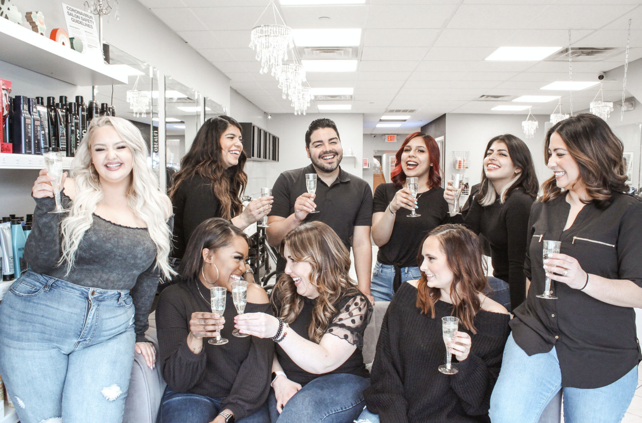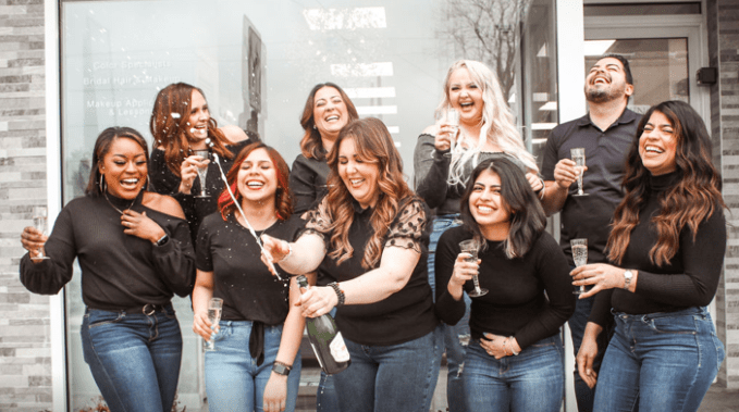 We love our team!! We always find ways to celebrate. We LOVE our annual “Thank You dinner”, “Salonsgiving”, and ” Our Secret Elves Exchange”. We always love to make birthdays and big life events super special. We regularly get a group to go to big beauty conventions. We just love a good team outing!